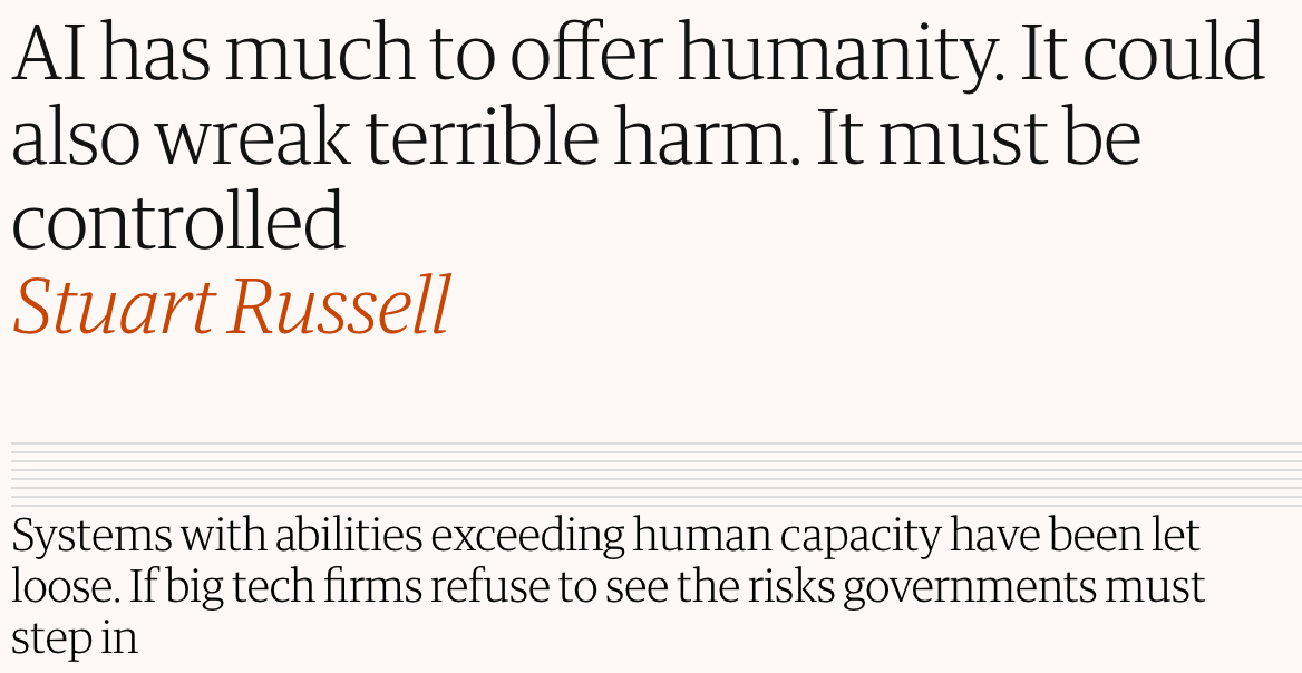 Even more remarkable was the effect it had on the experts who’d been directly involved in its development for decades. Geoffrey Hinton, considered widely as one of the founding pioneers of the field, who long held the view that computers can never become as powerful as the human brain, called his own invention an “existential threat”. Hinton said, “it’s quite conceivable that humanity is just a passing phase in the evolution of intelligence. Biological intelligence evolved to create digital intelligence, which can absorb everything humans have created and start getting direct experience of the world.” Another leading pioneer Stewart Russell wrote in an op-ed at The Guardian, “Humanity has much to gain from AI, but also everything to lose.”